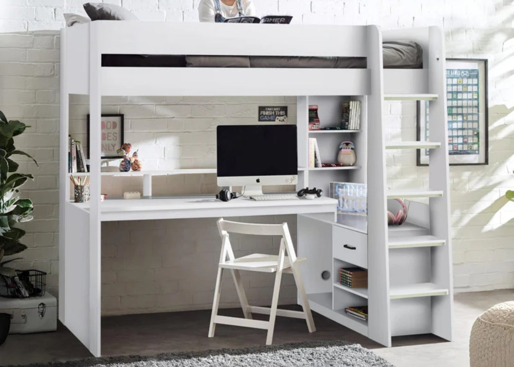 High sleepers maximise head-height space, so they are ideal for older children and teens who need a desk or gaming area underneath. These are brilliant for rooms with limited floor space but do require children to be comfortable climbing up and down safely.