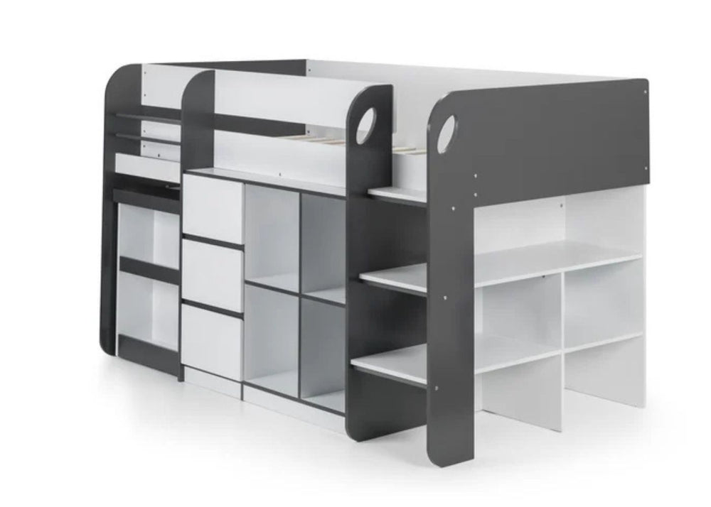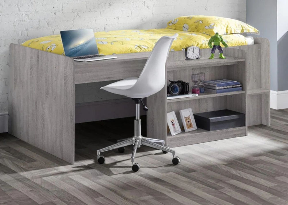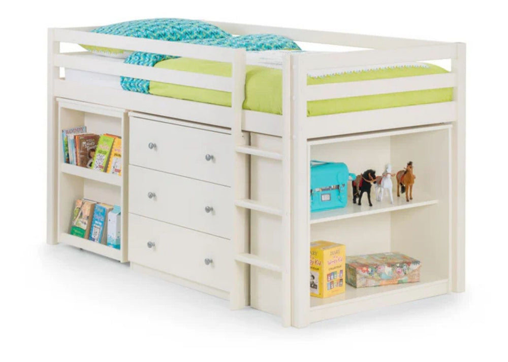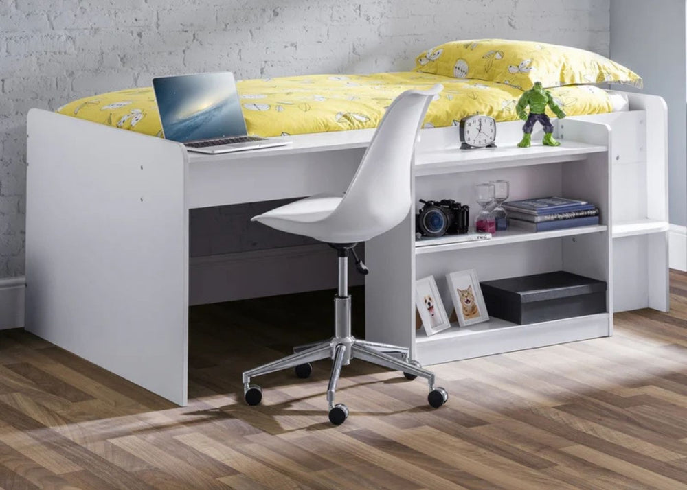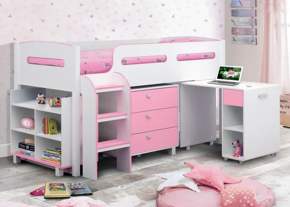 Mid sleepers sit slightly higher than a single but lower than a bunk. They often offer built-in storage or play areas underneath which help keep bedrooms tidy and organised. They are best from around age five onwards, depending on your child’s confidence with steps.