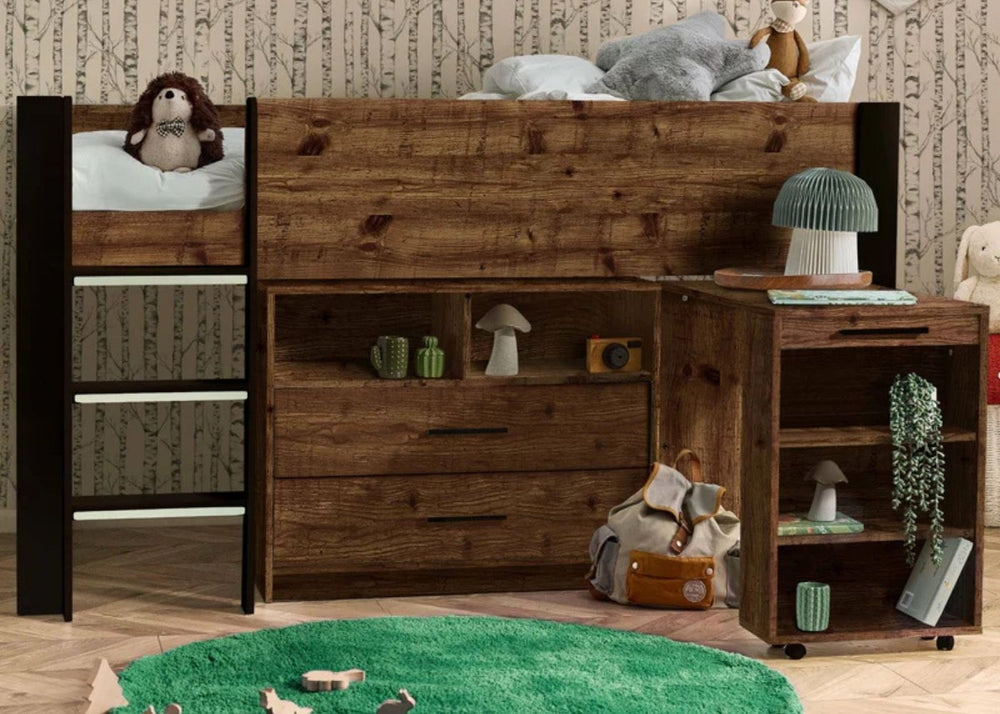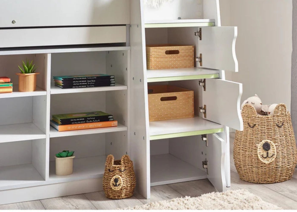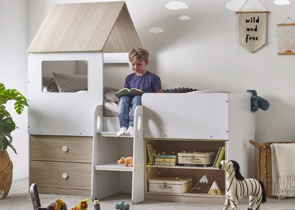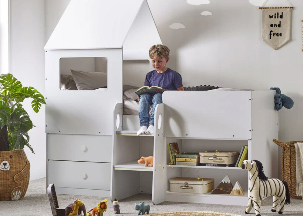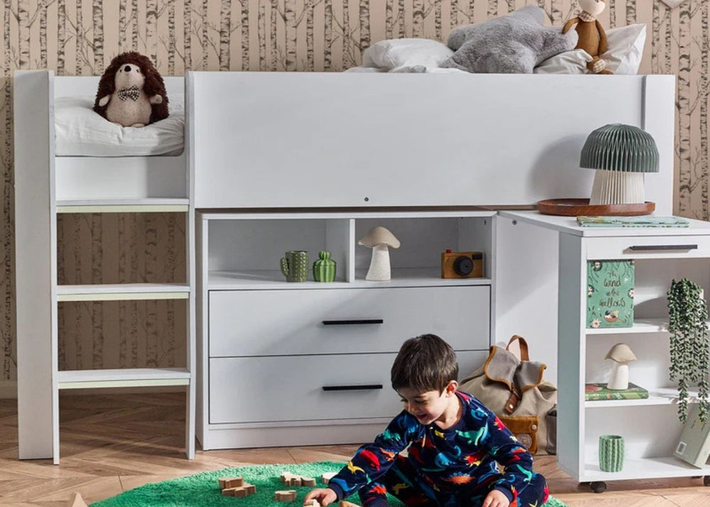 Mid sleepers are popular because they raise the sleeping area just high enough to allow shelves, cupboards or a small desk to sit neatly underneath. This makes them great for school-age children who need a mix of storage and play space. The additional level also keeps floors clearer, which can make even smaller rooms feel more spacious.