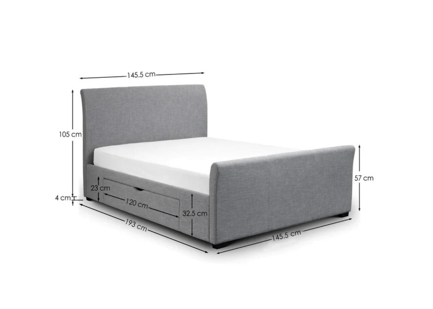 The Capri Bed With Drawers by Julian Bowen is a perfect blend of soft style and practical storage. Upholstered in a light grey linen-effect fabric and set on a hardwood frame with gently curved lines, it brings calm sophistication to bedrooms in and around your home. It is available in light grey, which helps it complement a variety of interior décor styles.