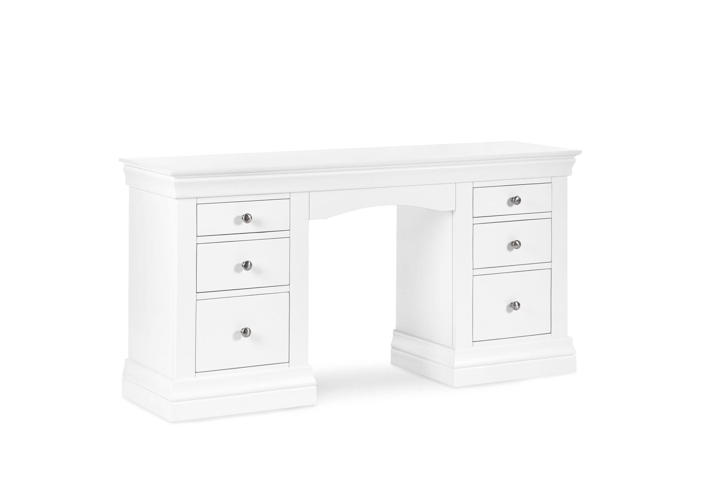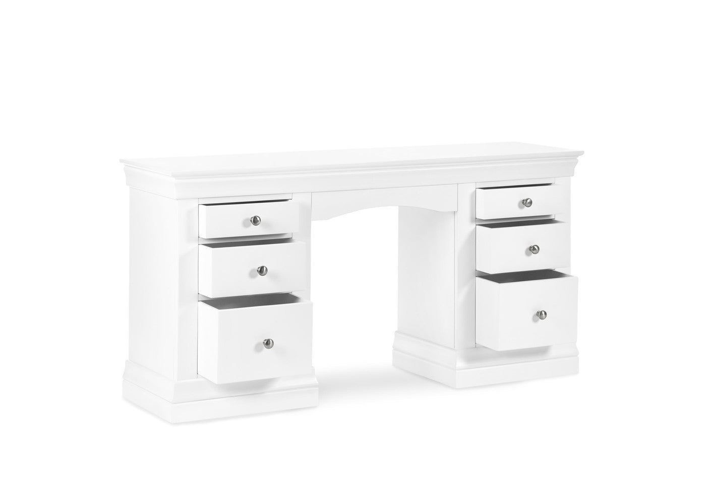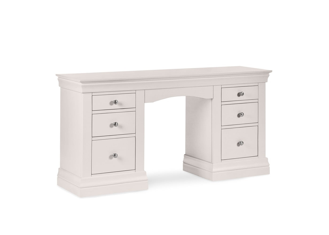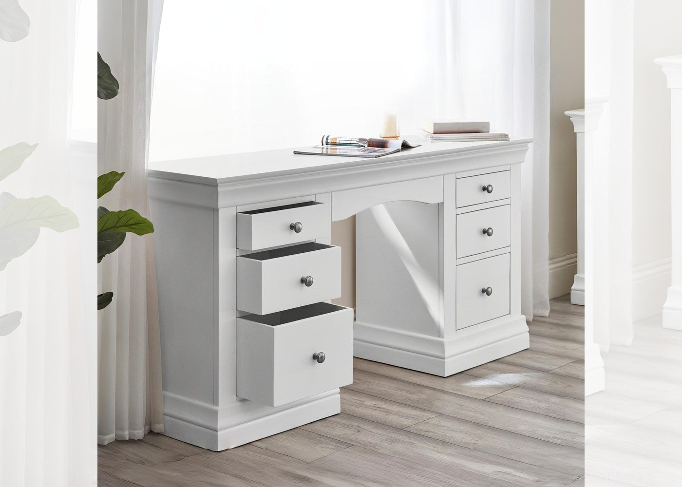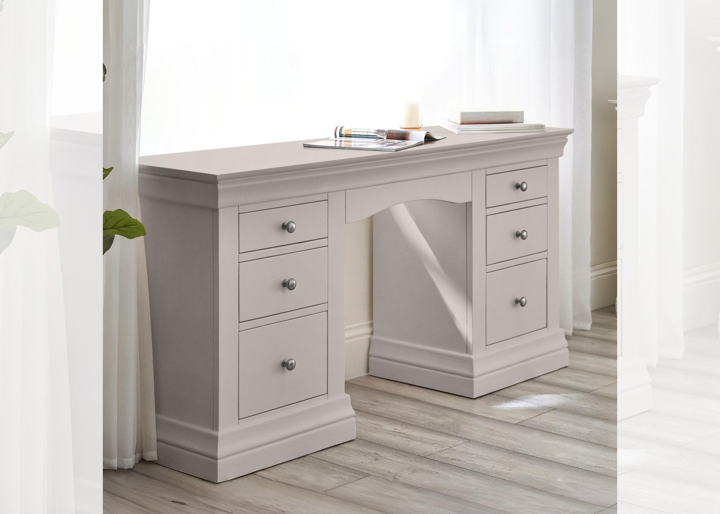 The Clermont Dressing Table by Julian Bowen is a practical dressing table designed for everyday use. It offers functional storage while maintaining a clean and versatile appearance. It is available in White and Light grey 2.