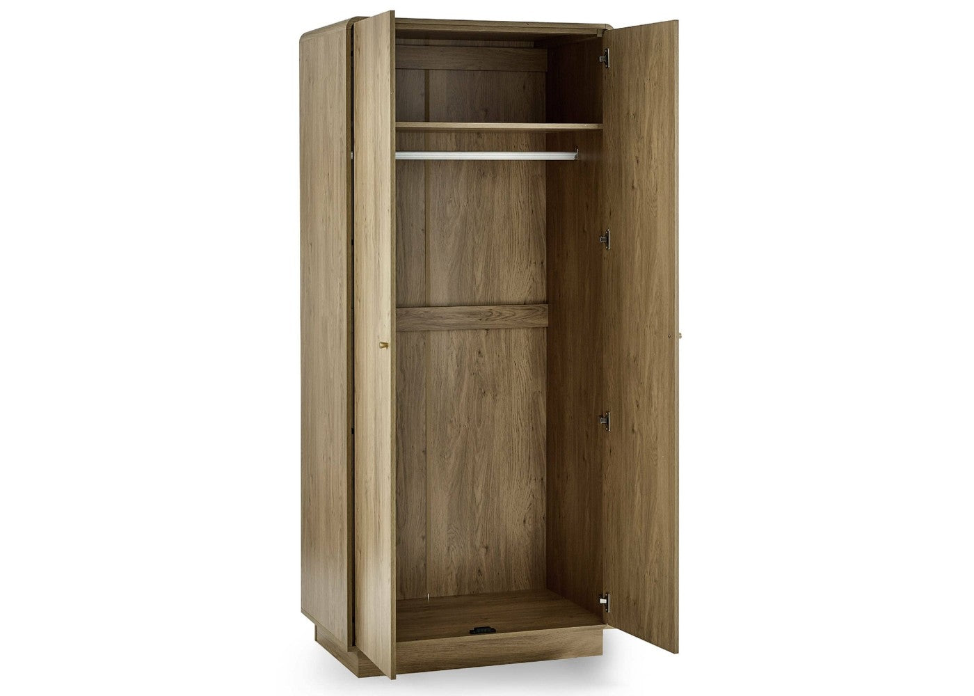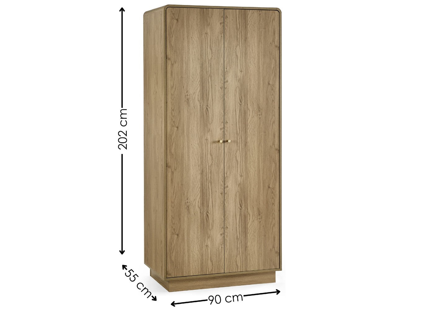 The Ingrid 2 Door Wardrobe brings a stylish and inviting touch to your bedroom with its sleek wood effect finish and gently curved edges. The softened contours give it a warm, contemporary look, while the gold tone handles add a refined elegance that makes this wardrobe a standout feature in any space. Its modern design blends seamlessly with a variety of décor styles, offering both visual appeal and everyday practicality.