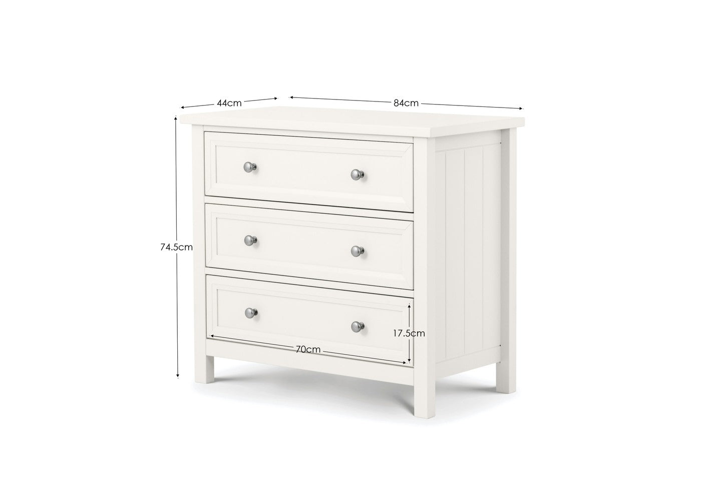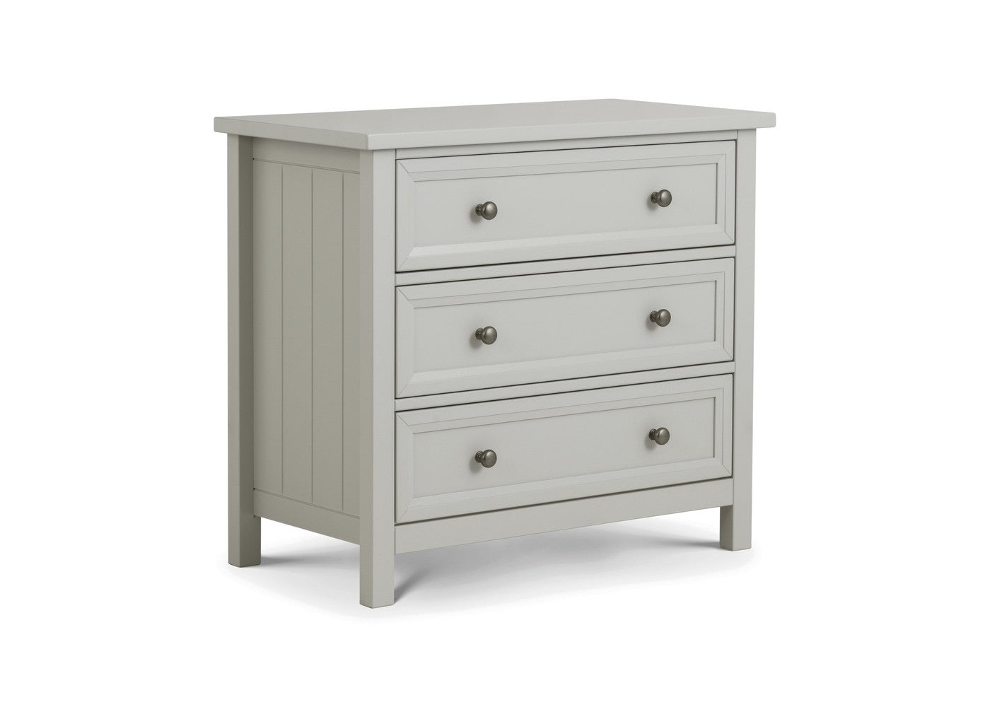 The Maine 3 Drawer Wide Chest by Julian Bowen is a practical chest of drawers designed for everyday use. It offers functional storage while maintaining a clean and versatile appearance. It is available in Dove grey, Surf white and Anthracite.