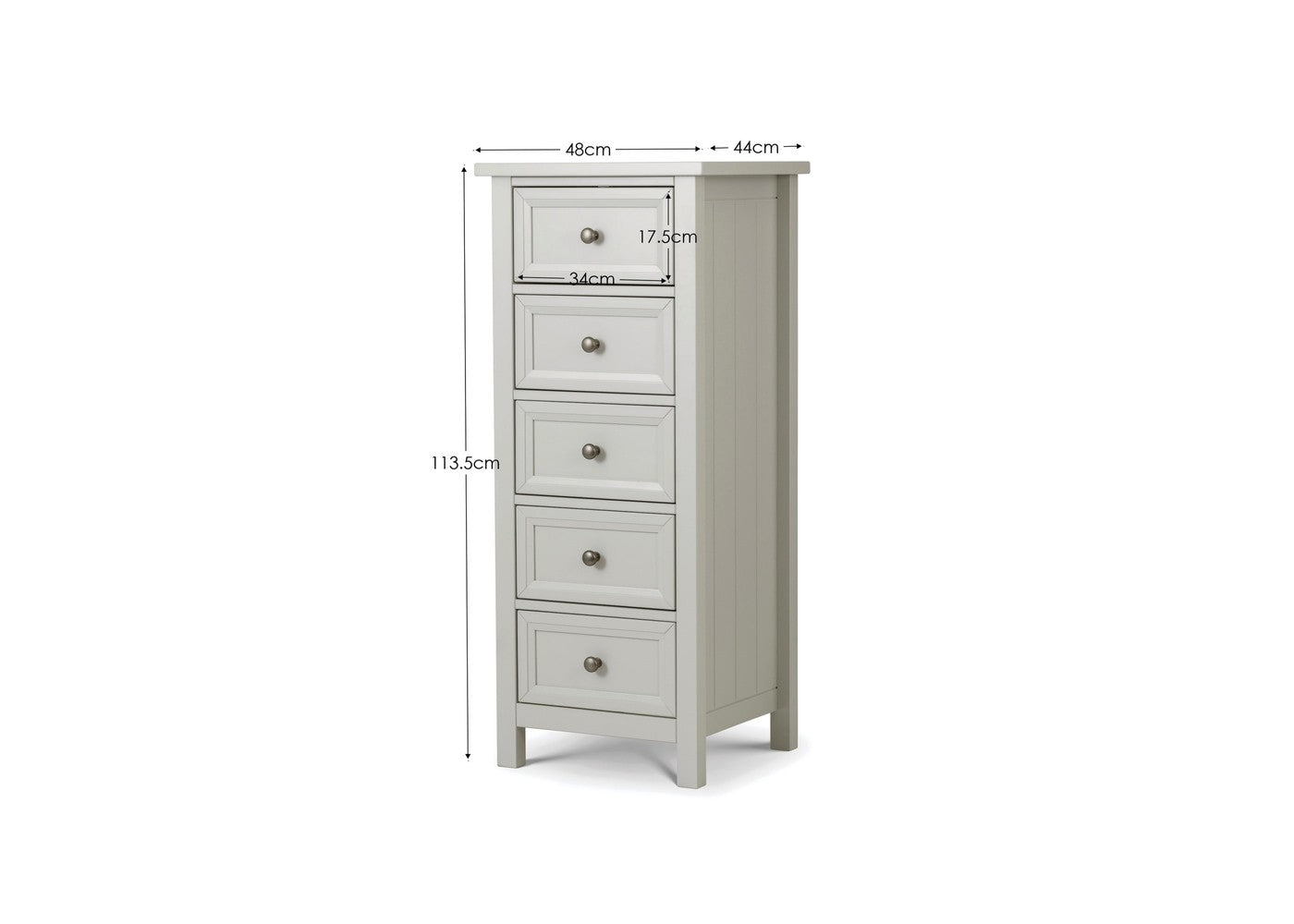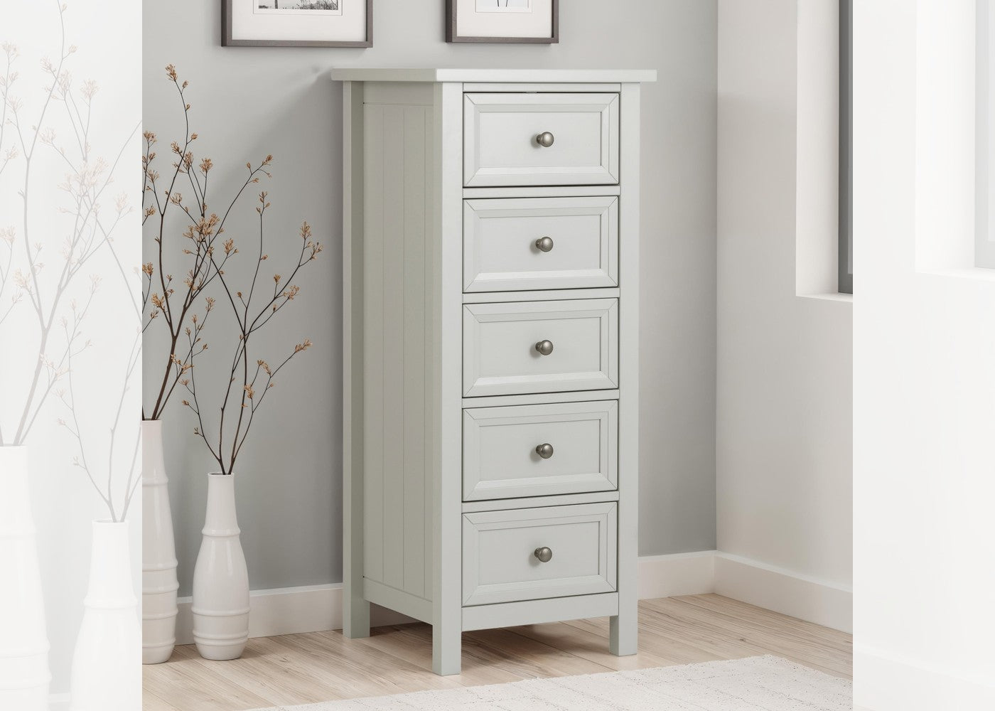 The Maine 5 Drawer Tall Chest by Julian Bowen is supplied flat packed for easier delivery and access into the home. This chest includes clearly labelled components and step by step instructions, making it straightforward to assemble using standard household tools.