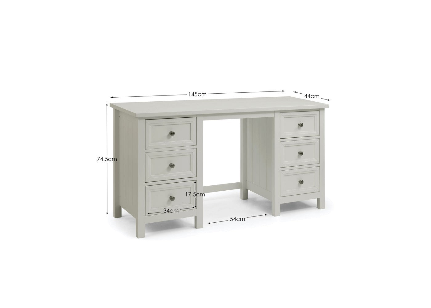 The Maine Dressing Table by Julian Bowen is a practical dressing table designed for everyday use. It offers functional storage while maintaining a clean and versatile appearance. It is available in Dove grey and Surf white.