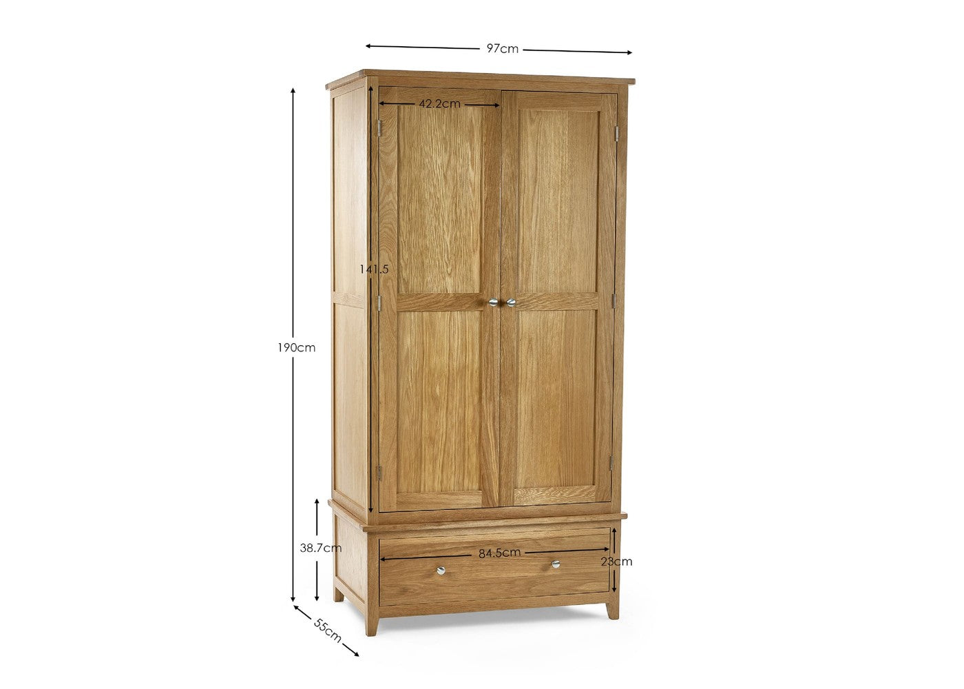 Featuring a spacious double door layout, the wardrobe offers ample hanging space for clothing, while the additional lower drawer provides convenient storage for folded items, accessories, or bedding. Practical, sturdy, and thoughtfully designed, it brings both function and elegance to your room. To complete your bedroom with matching furniture, explore more pieces in our bedroom furniture collection at West Norfolk Beds.