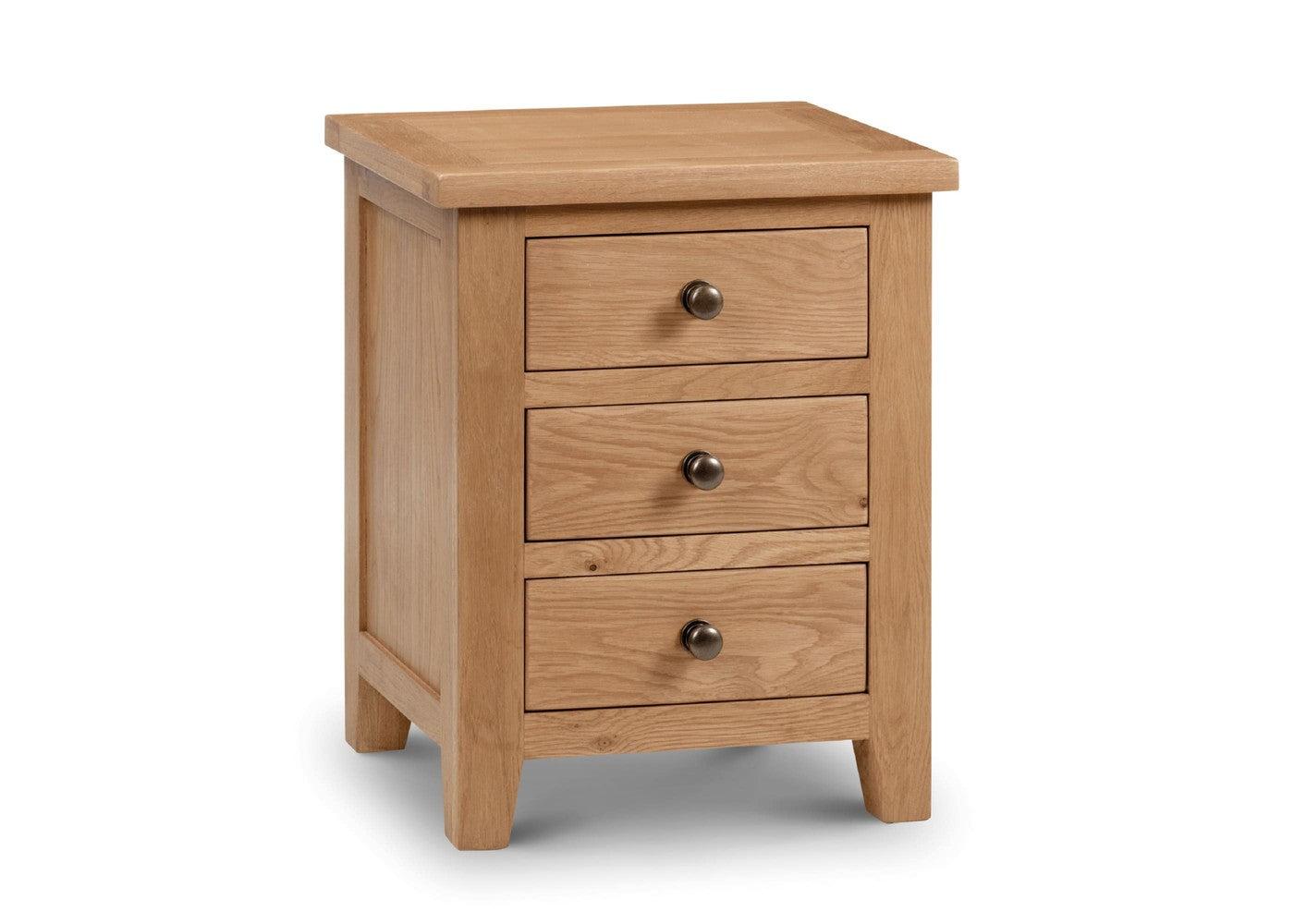 The Marlborough 3 Drawer Bedside by Julian Bowen is a practical bedside table designed for everyday use. It offers functional storage while maintaining a clean and versatile appearance. It is available in Oak.