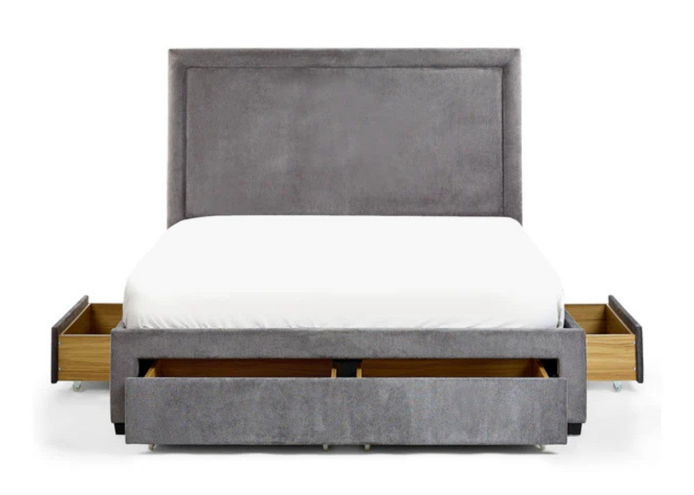 The Mayfair 4 Drawer Storage Bed offers a modern, stylish solution for those wanting both comfort and clever storage. Featuring a contemporary grey frame with a soft padded headboard, it brings a refined, welcoming feel to any bedroom. Four spacious underbed drawers provide ample hidden storage for bedding, clothing or everyday essentials, helping you keep your space organised and clutter free. Designed for ease, it also includes simple assembly to ensure a quick and smooth setup.