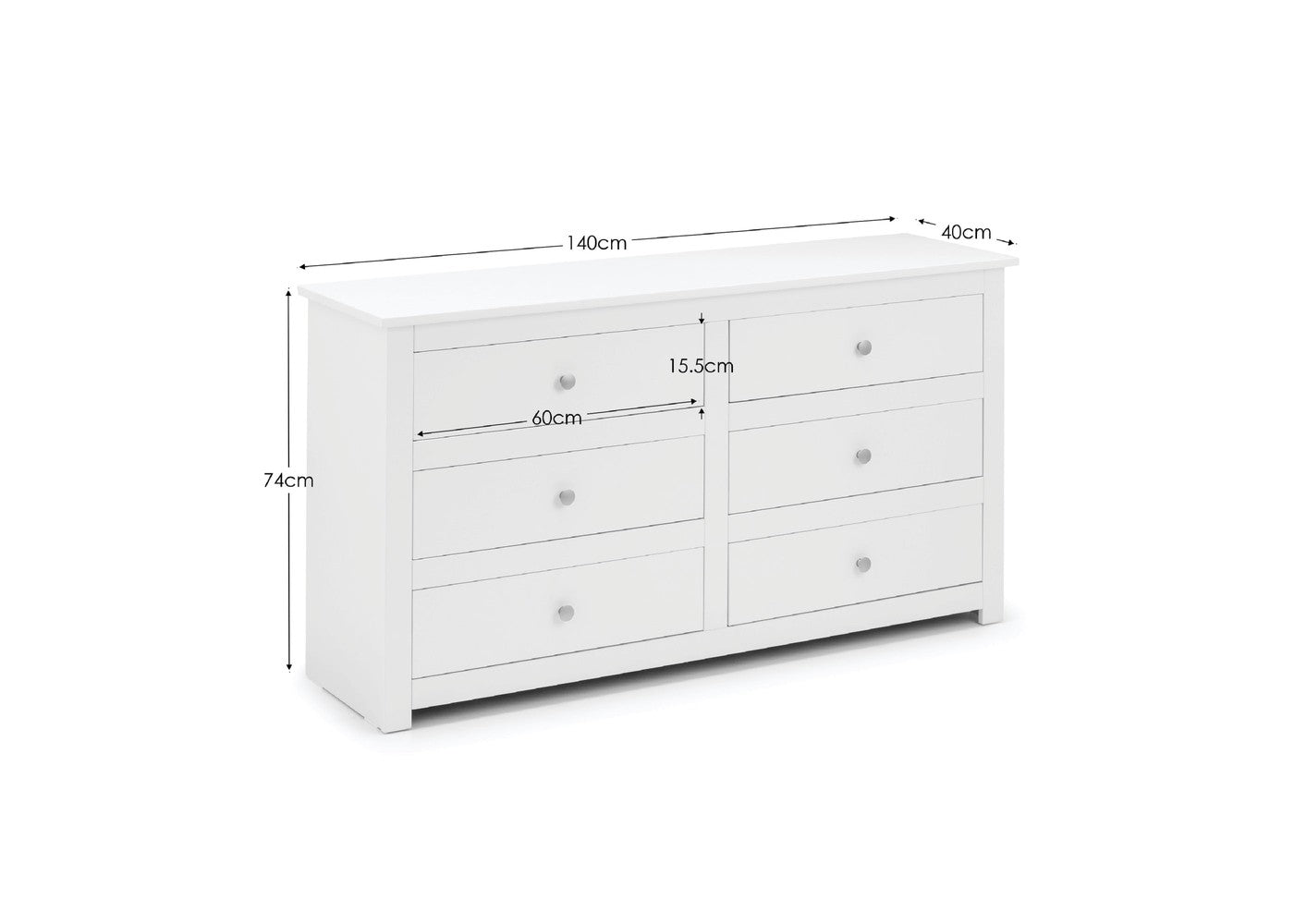 The Radley 6 Drawer Chest by Julian Bowen is a practical chest of drawers designed for everyday use. It offers functional storage while maintaining a clean and versatile appearance. It is available in Surf white and Anthracite.