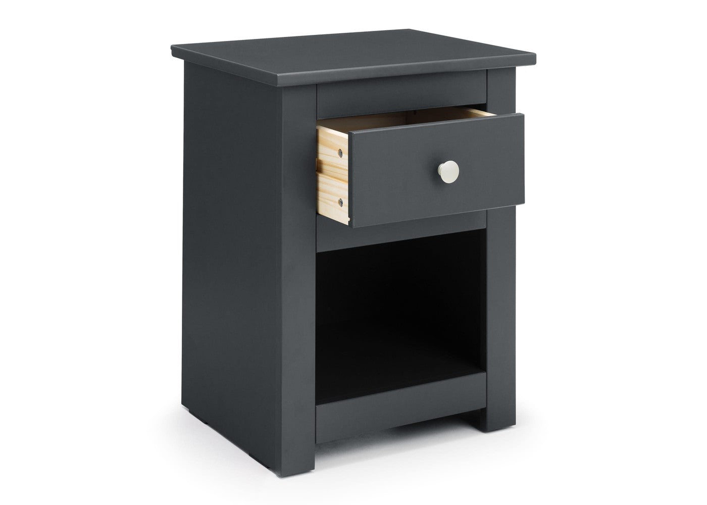 The Radley Bedside by Julian Bowen is a practical bedside table designed for everyday use. It offers functional storage while maintaining a clean and versatile appearance. It is available in Surf white and Anthracite.