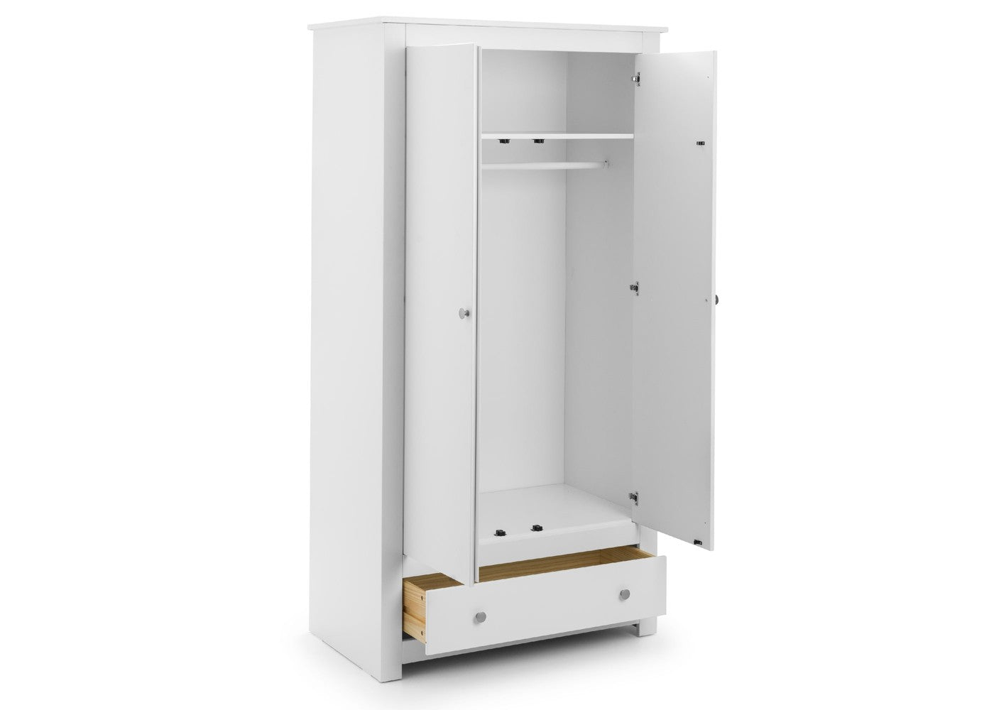 Behind the two doors, you will find a practical hanging rail perfect for keeping clothing organised and crease-free, while the additional lower drawer provides extra storage for folded items or accessories. The Radley Wardrobe combines style with everyday functionality, helping you maintain a neat and calming bedroom environment. To complete your space with coordinating pieces, explore our Bedroom Furniture Collection .