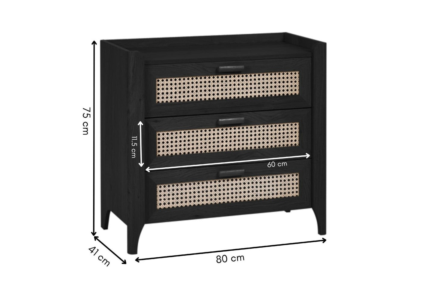 • Three storage drawers
