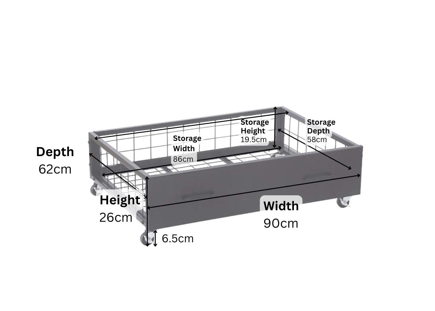The Metal Storage Drawers are a sleek and strong steel set of under-bed drawers designed to maximise bedroom space and keep things organised. With smooth-glide runners and a ventilated mesh design for breathability, these storage units slide effortlessly under your bed. This model is available in black and white, making it easy to match with your existing bedroom décor.