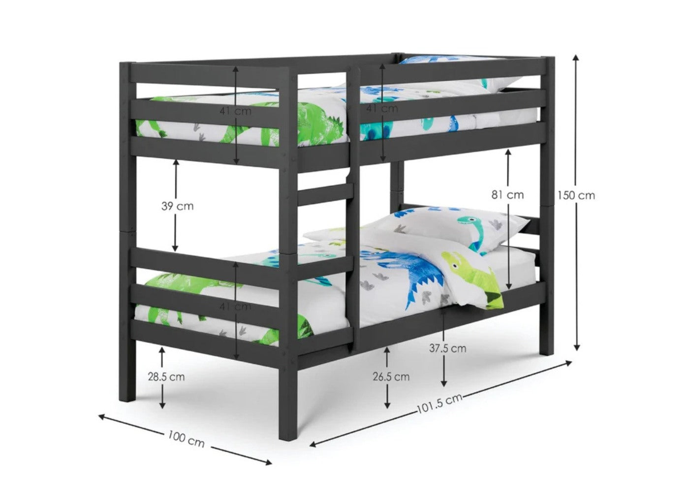 The Camden Bunk by Julian Bowen is a smart and stylish solution for shared bedrooms, offering practicality without compromising on design. Crafted from durable solid pine and finished in a choice of modern tones, it features clean lines and a smooth lacquered surface that brings a fresh, contemporary feel to any home in and around your home. It is available in anthracite, surf white, or dove grey, which helps it complement a variety of interior décor styles.