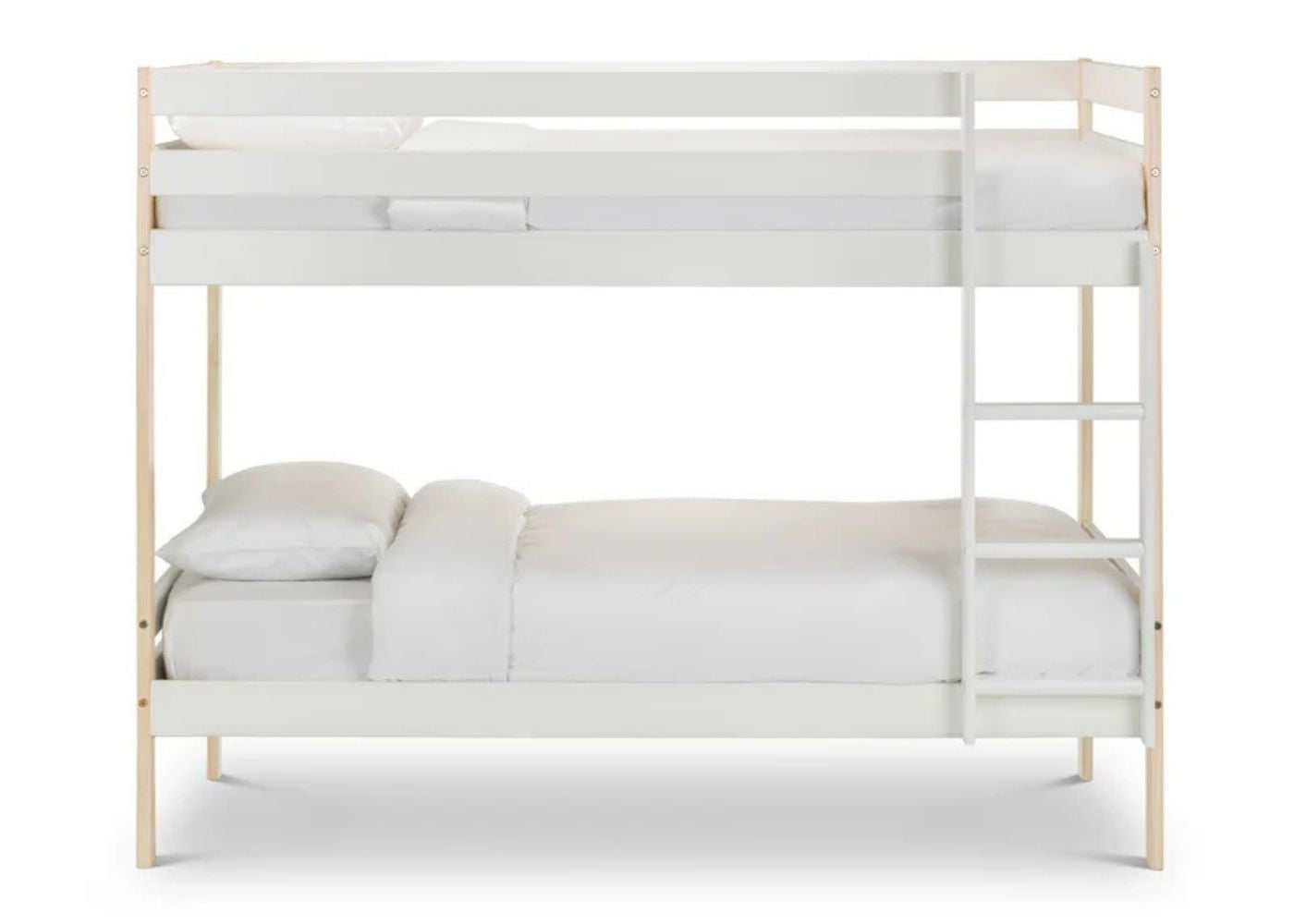 The Nova Bunk Bed by Julian Bowen brings a clean, modern look to family homes across your home. Designed for practicality and comfort, it features a sturdy frame, easy-climb ladder, and safety rails for peace of mind. It is available in white and pine, which helps it complement a variety of interior décor styles.