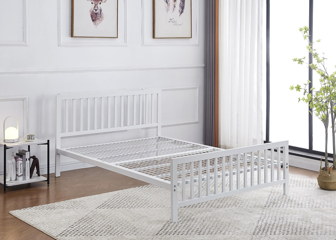 The Holbrook Bed is a practical metal bed designed for everyday use. It is a sturdy steel-framed bed designed for everyday strength and sleek simplicity. It is available in black and white.